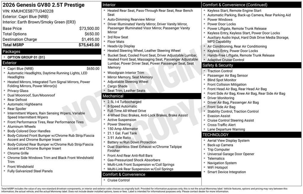 New 2026 GV80 2.5T Prestige AWD